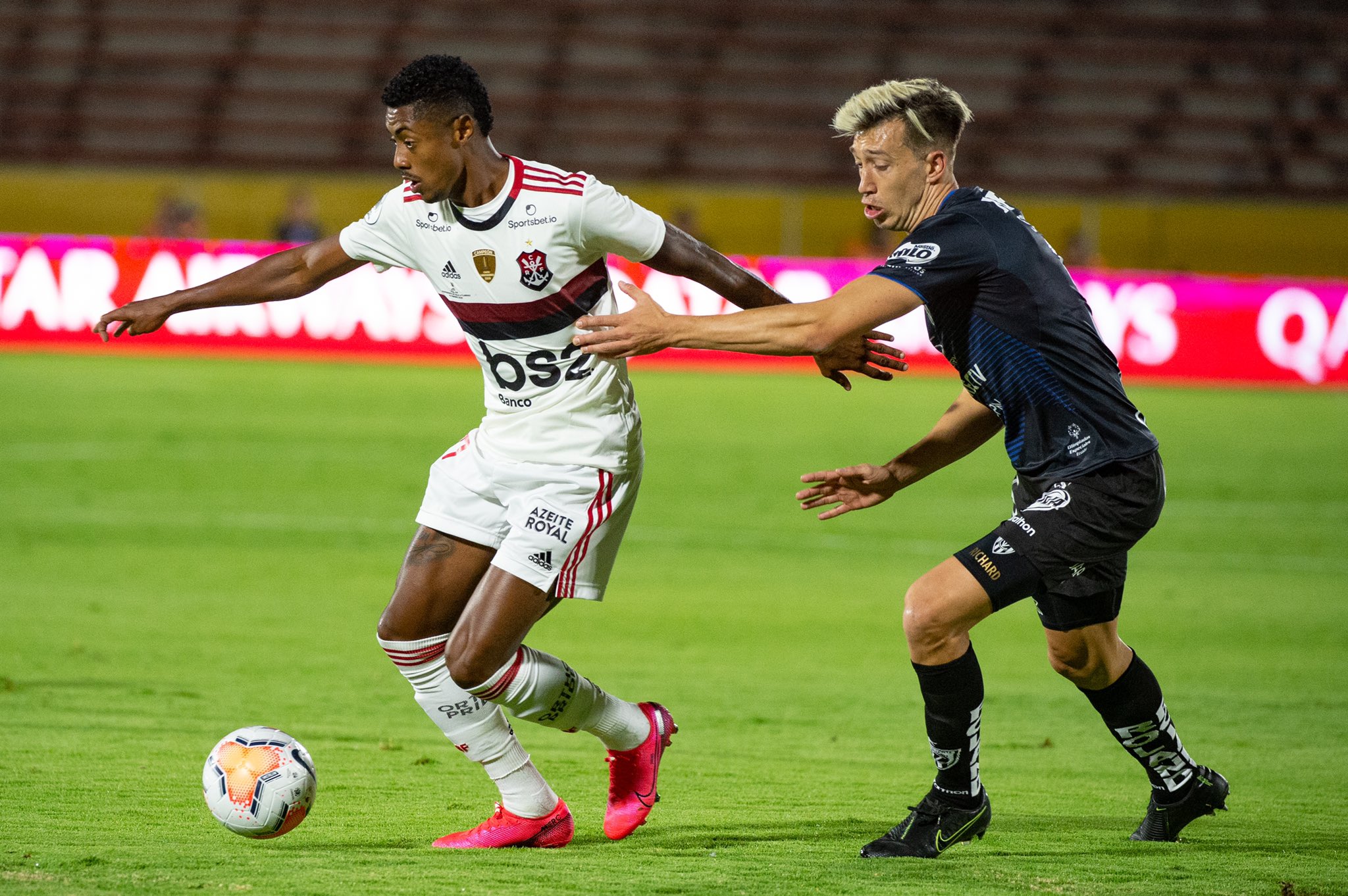 Para la segunda mitad, Flamengo regresó a la cancha dispuesto al empate y obligó al local a encerrarse en su propia zona. A los 19 minutos, Gabriel Torres volvió a quedar cara a cara con el arquero brasileño, pero definió sin convicción. Apenas la jugada siguiente, Bruno Henrique arranco un contragolpe letal tras recibir después de la media cancha, se quitó de encima a Schunke a la carrera y firmó la igualdad tras un toque ante Jorge Pinos.